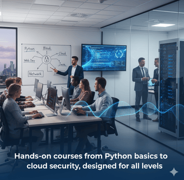 Hands-on courses from Python basics to cloud security, designed for all levels.